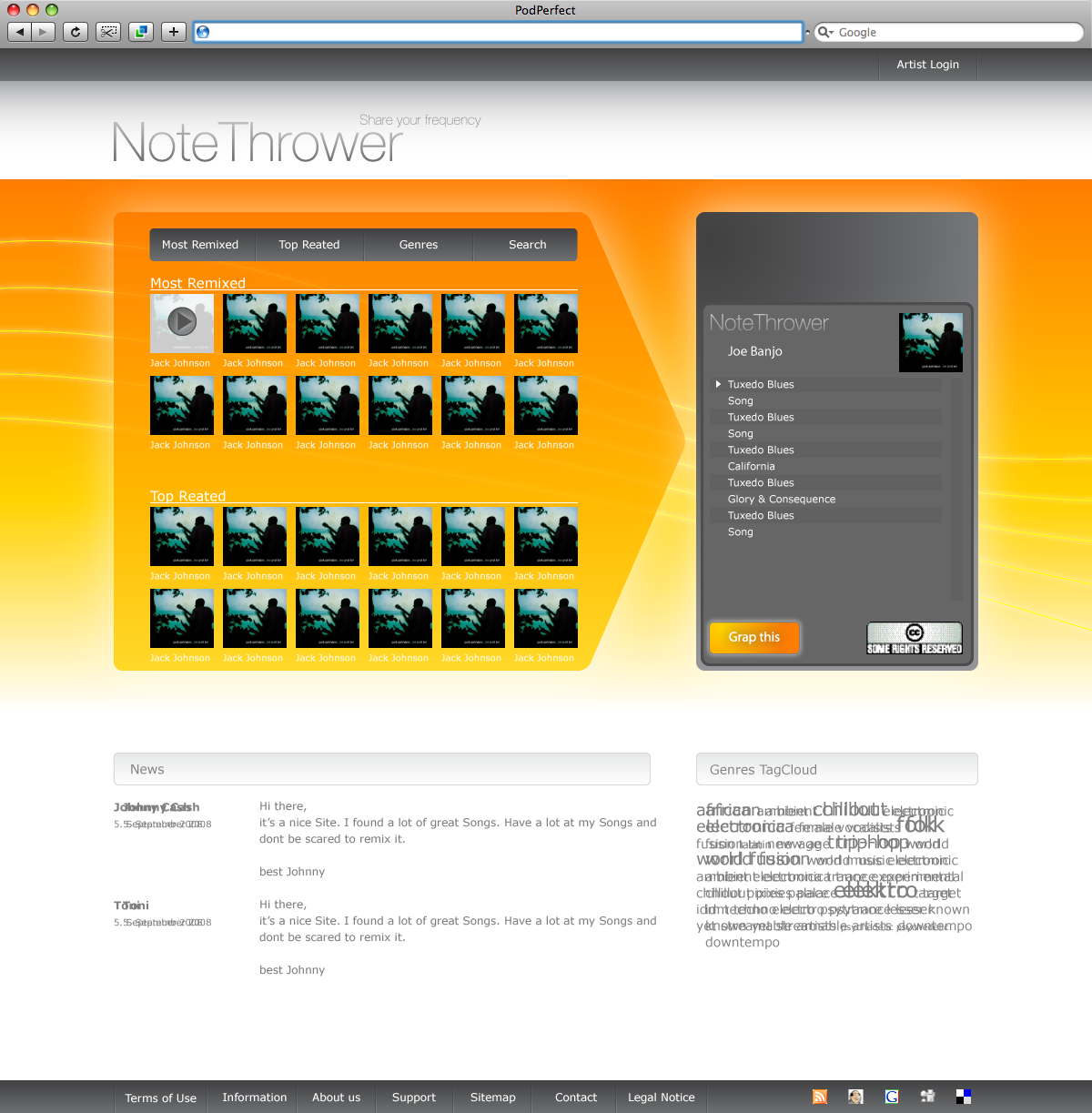 Notethrower is a new music collaboration and licensing service for creative commons music. It will offer artists a unique platform for music collaboration and distribution. Artists will also be able to share and sell their remixed works and split the profits from the sale of their collaborative content. To celebrate it’s upcoming launch, Notethrower is inviting anyone interested to participate in its first Open Music Jam.